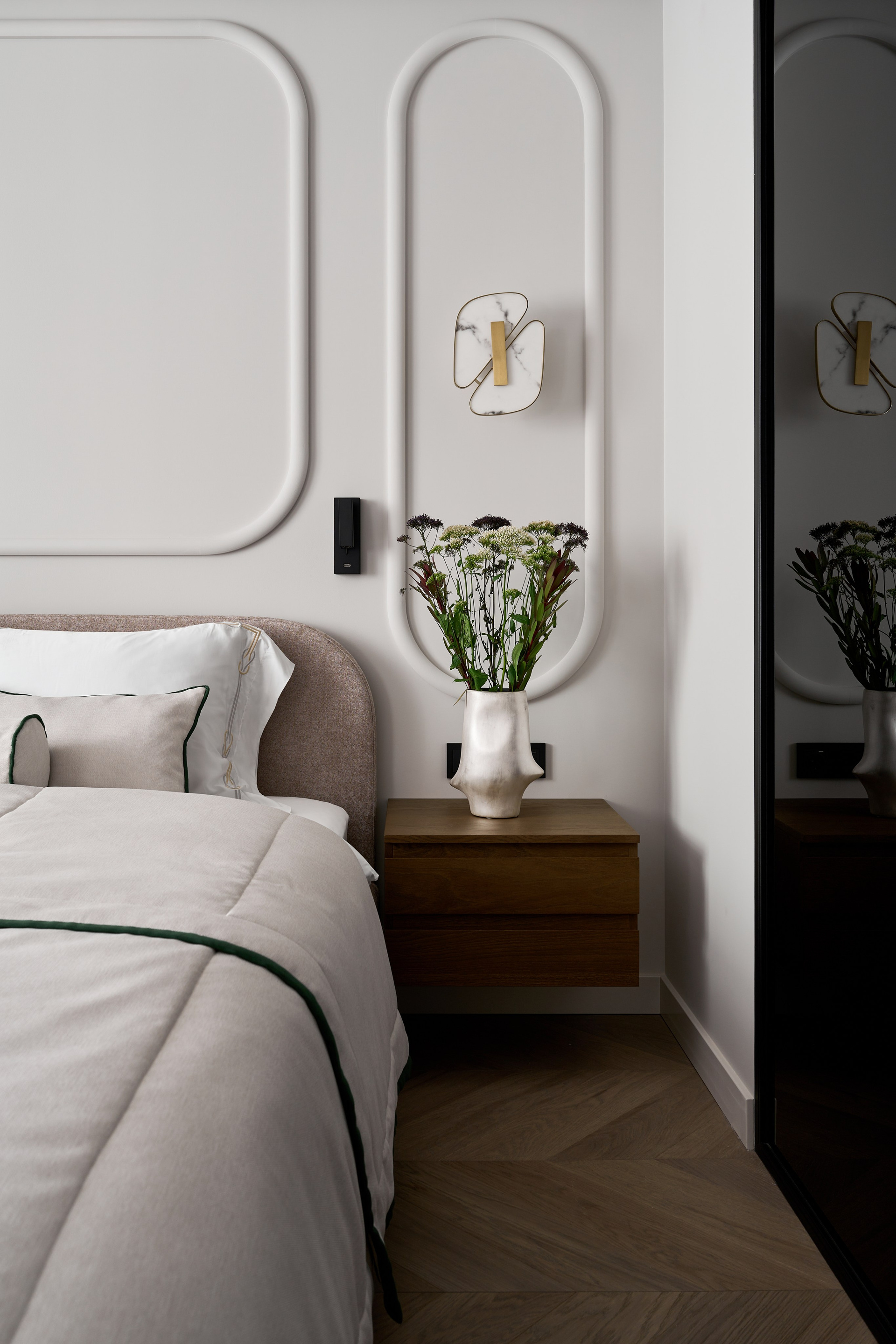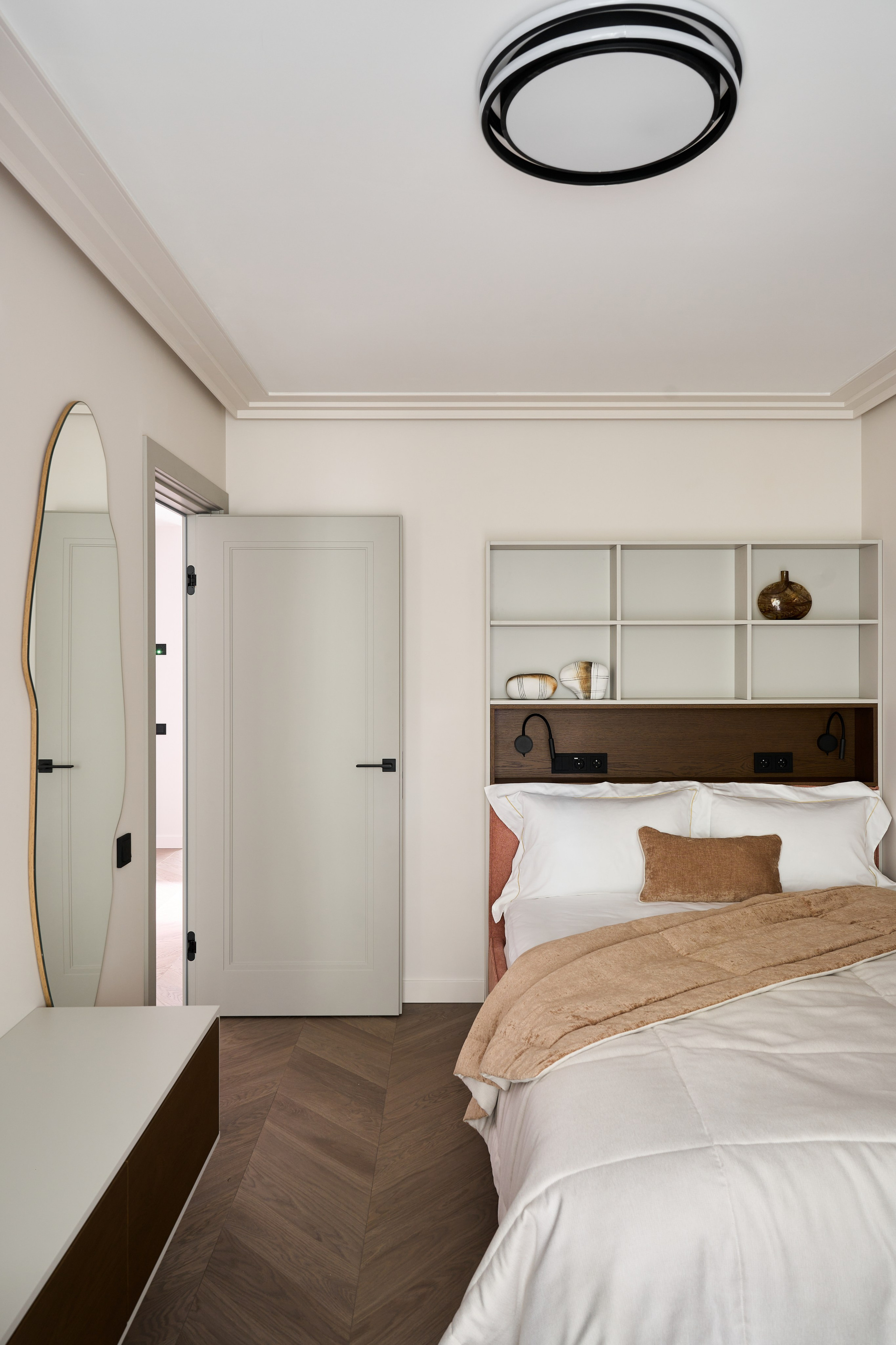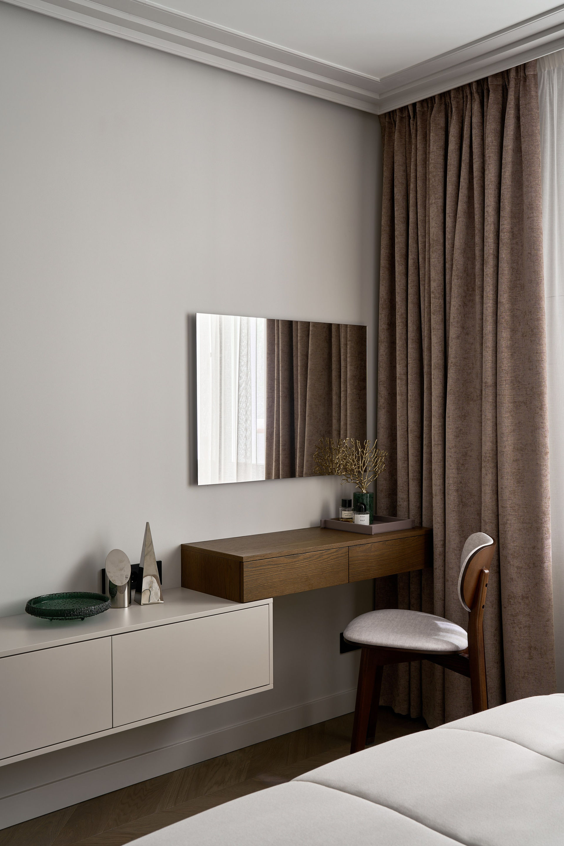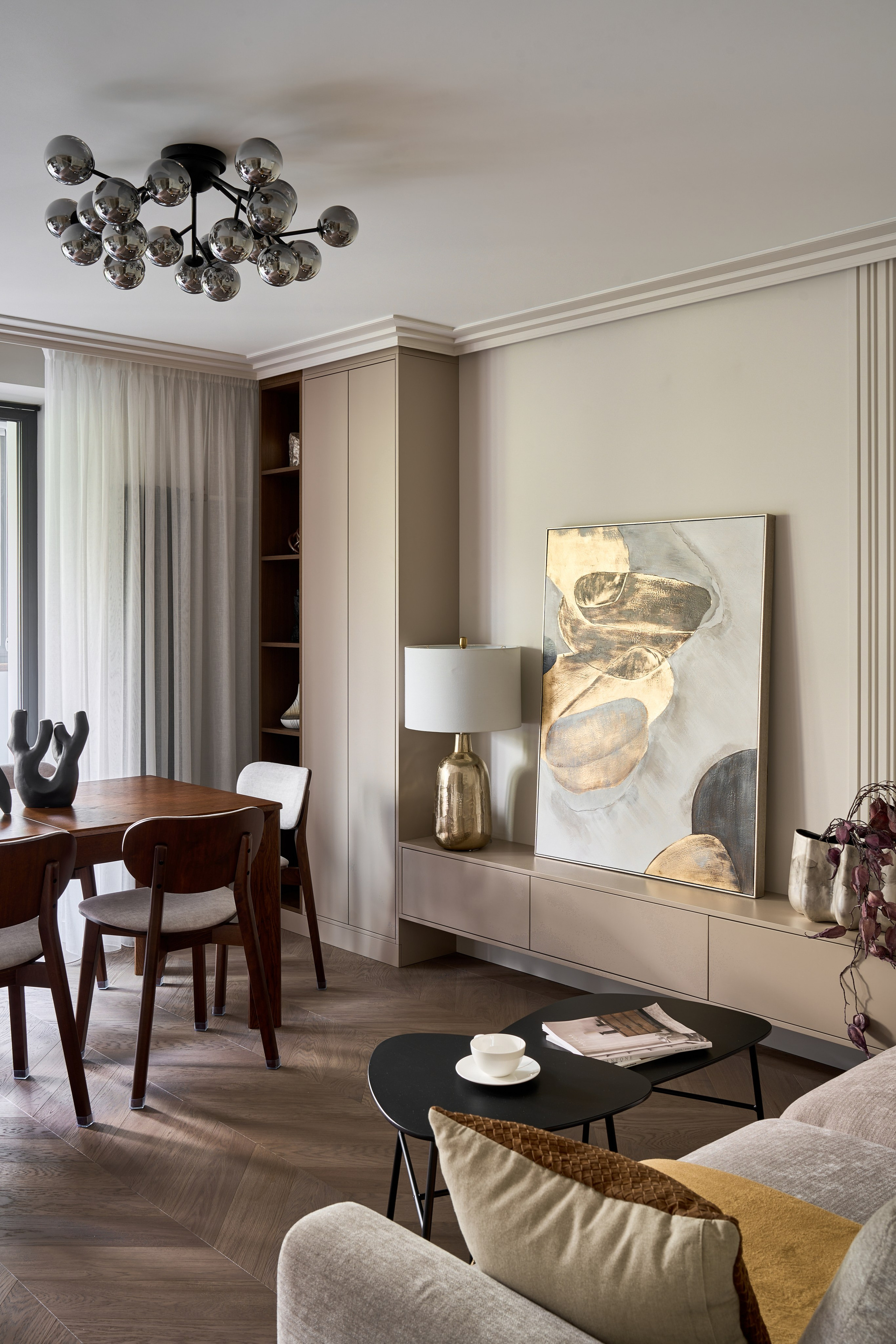 Профессиональная фотосъёмка интерьера квартиры в тёплых тонах выполнена для публикации в онлайн-журнале INMYROOM. Пространство оформлено в спокойной натуральной палитре с использованием текстиля, дерева и мягкого освещения, создающих уютную атмосферу современного жилого интерьера.