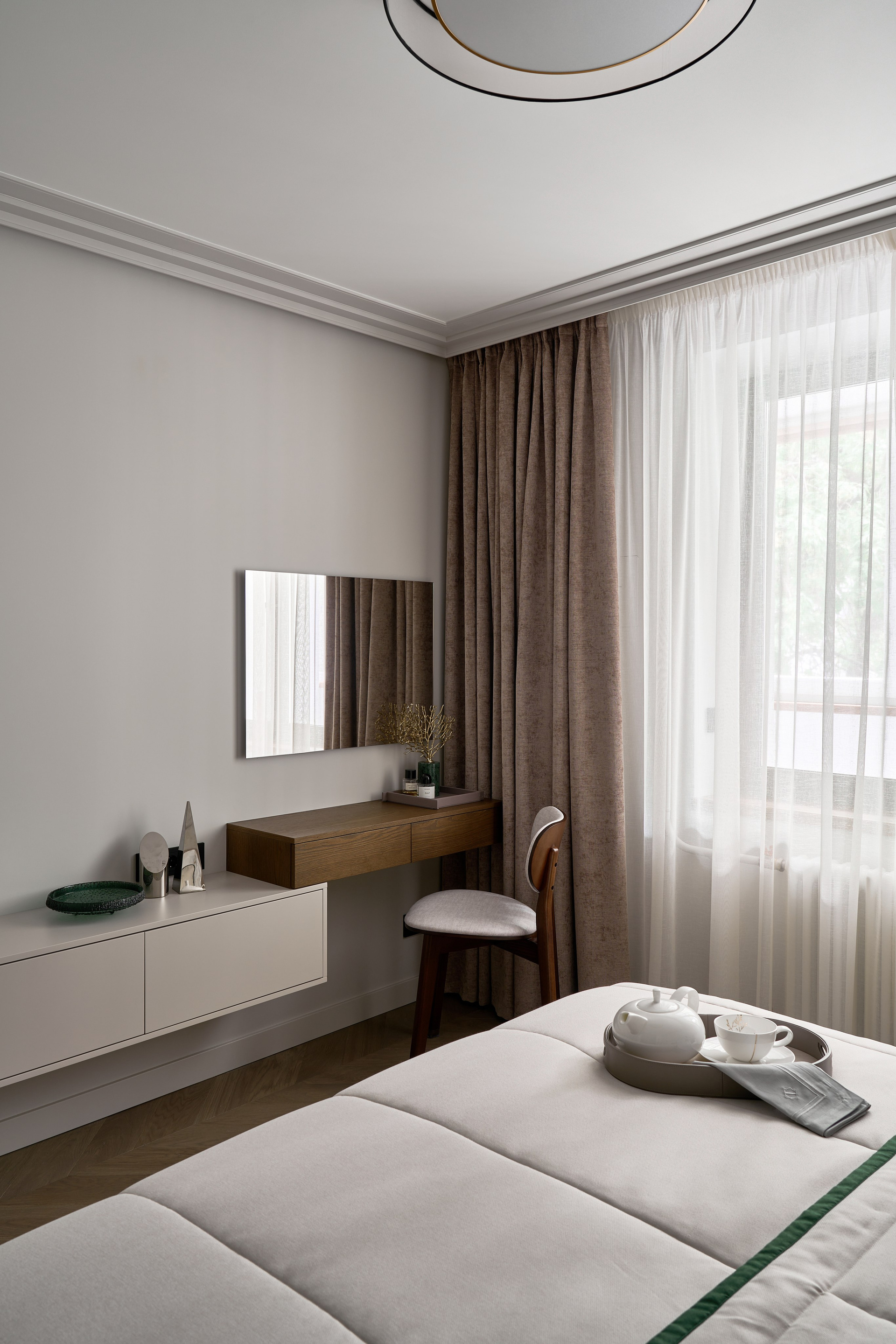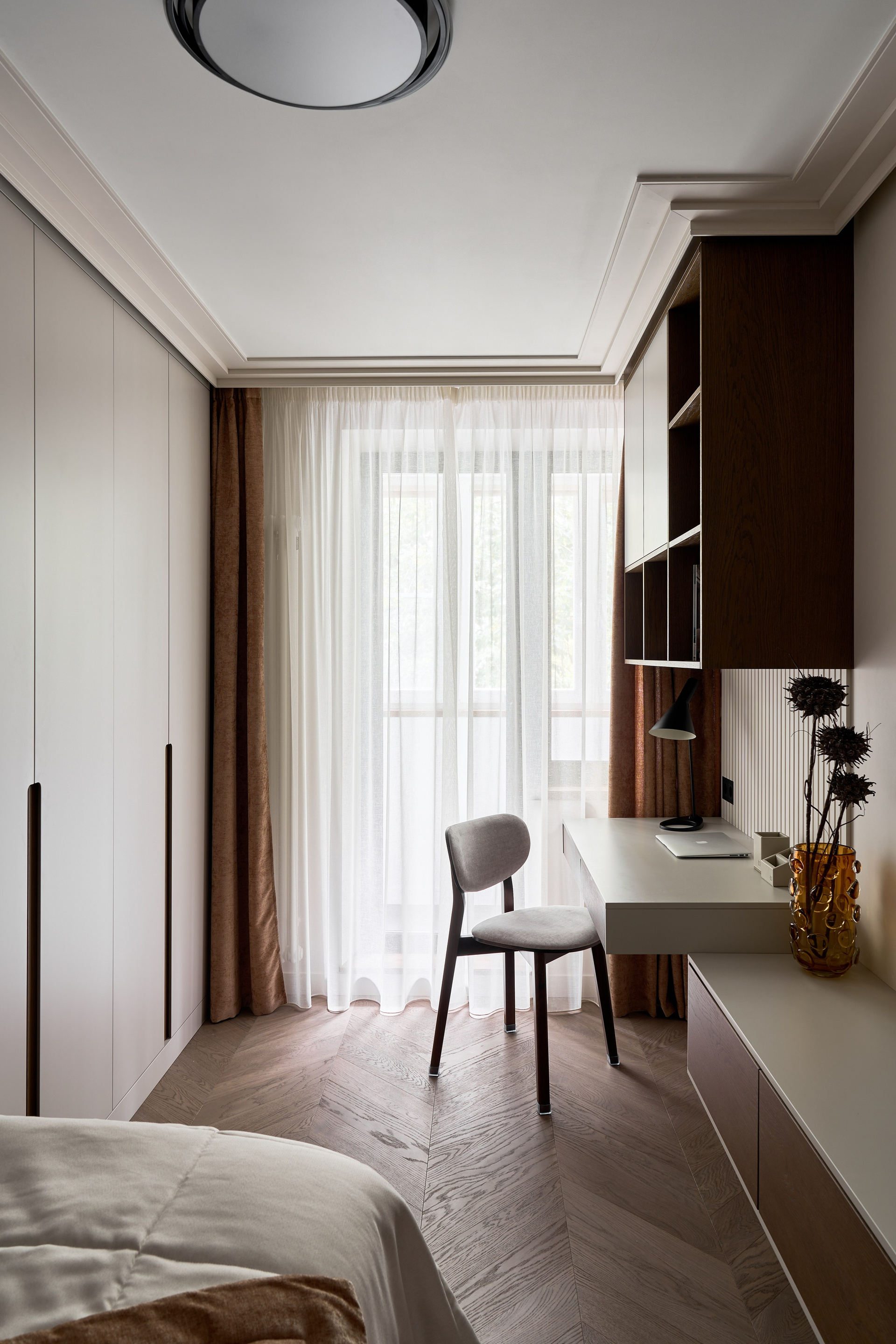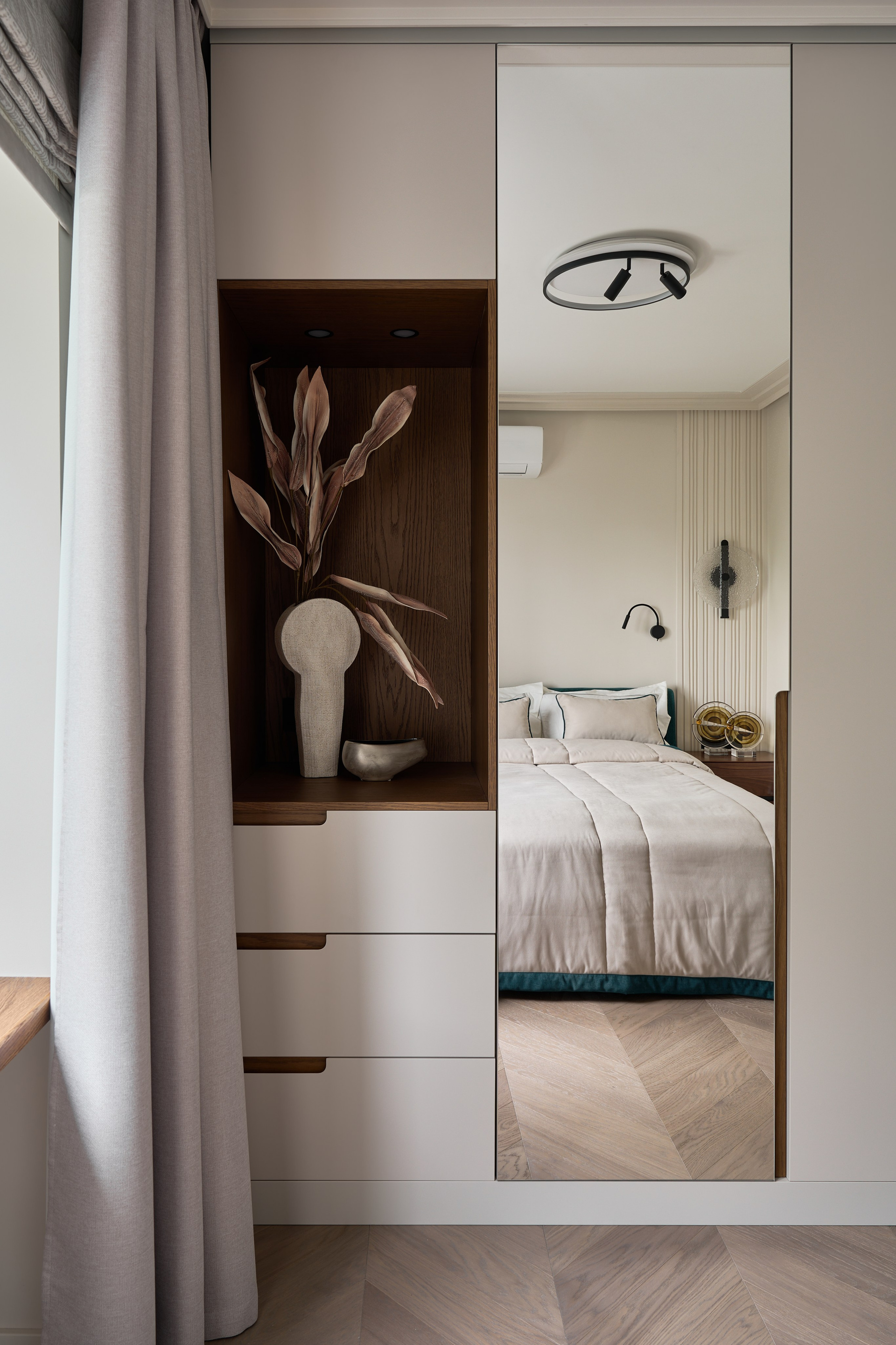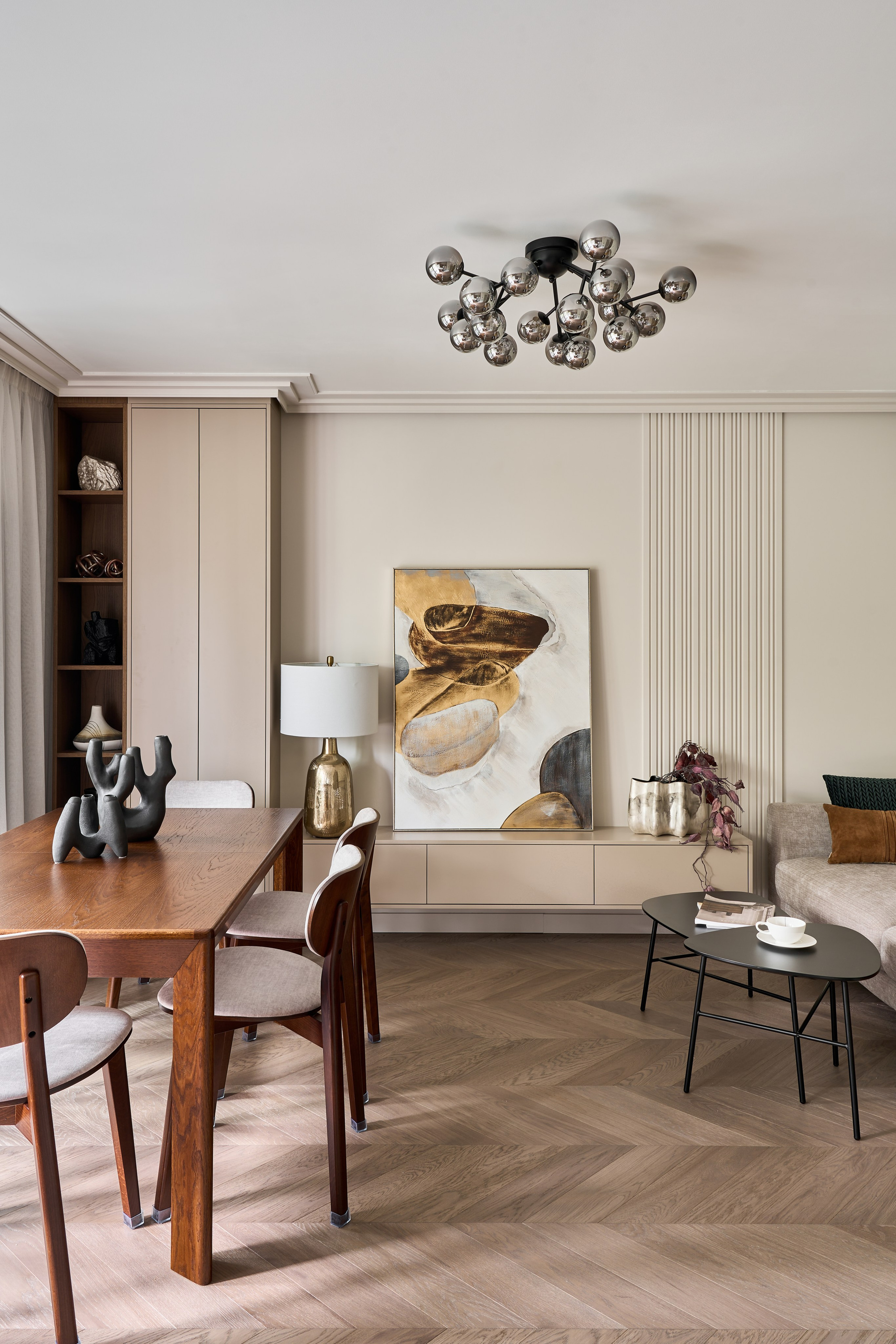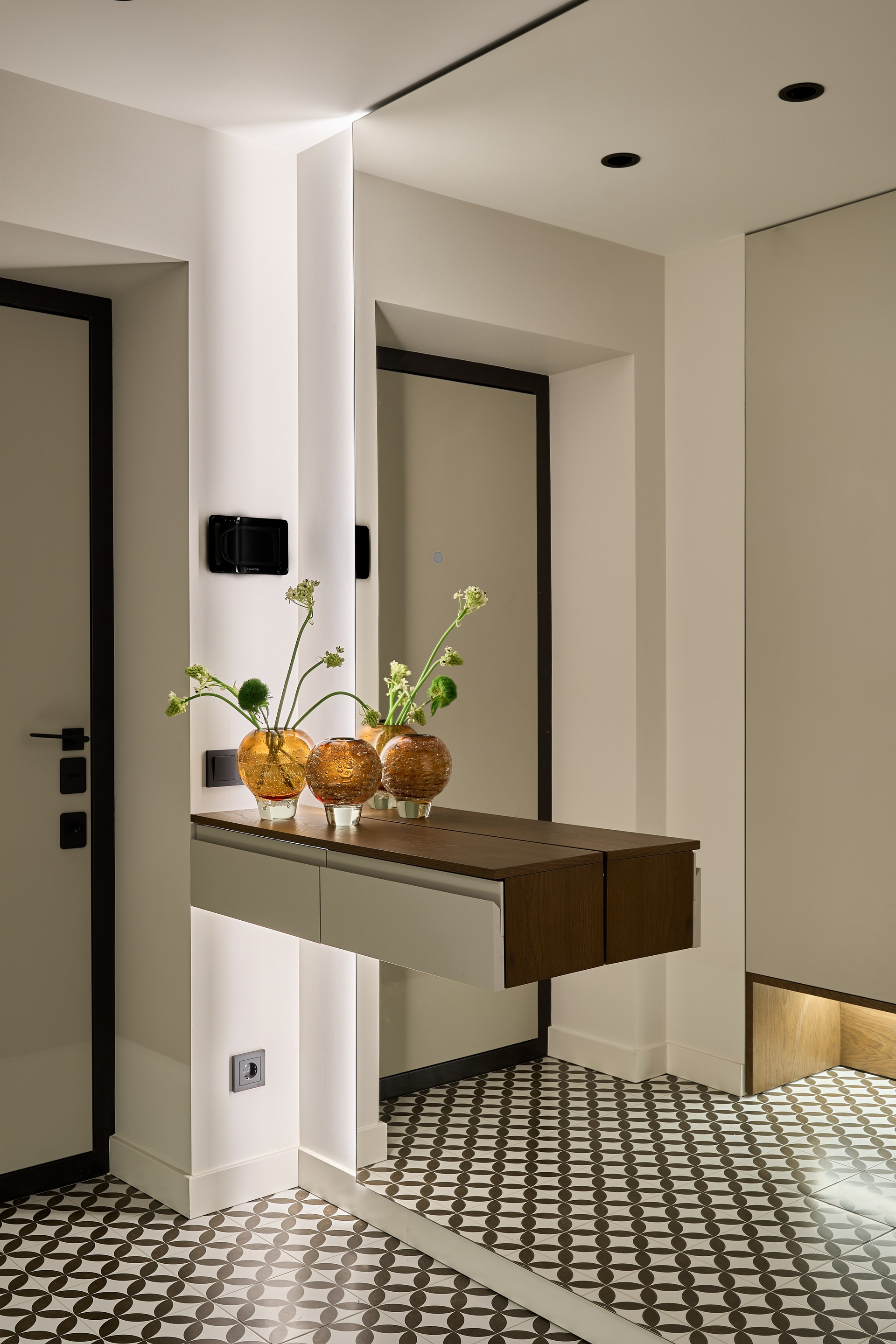 Профессиональная фотосъёмка интерьера квартиры в тёплых тонах выполнена для публикации в онлайн-журнале INMYROOM. Пространство оформлено в спокойной натуральной палитре с использованием текстиля, дерева и мягкого освещения, создающих уютную атмосферу современного жилого интерьера.