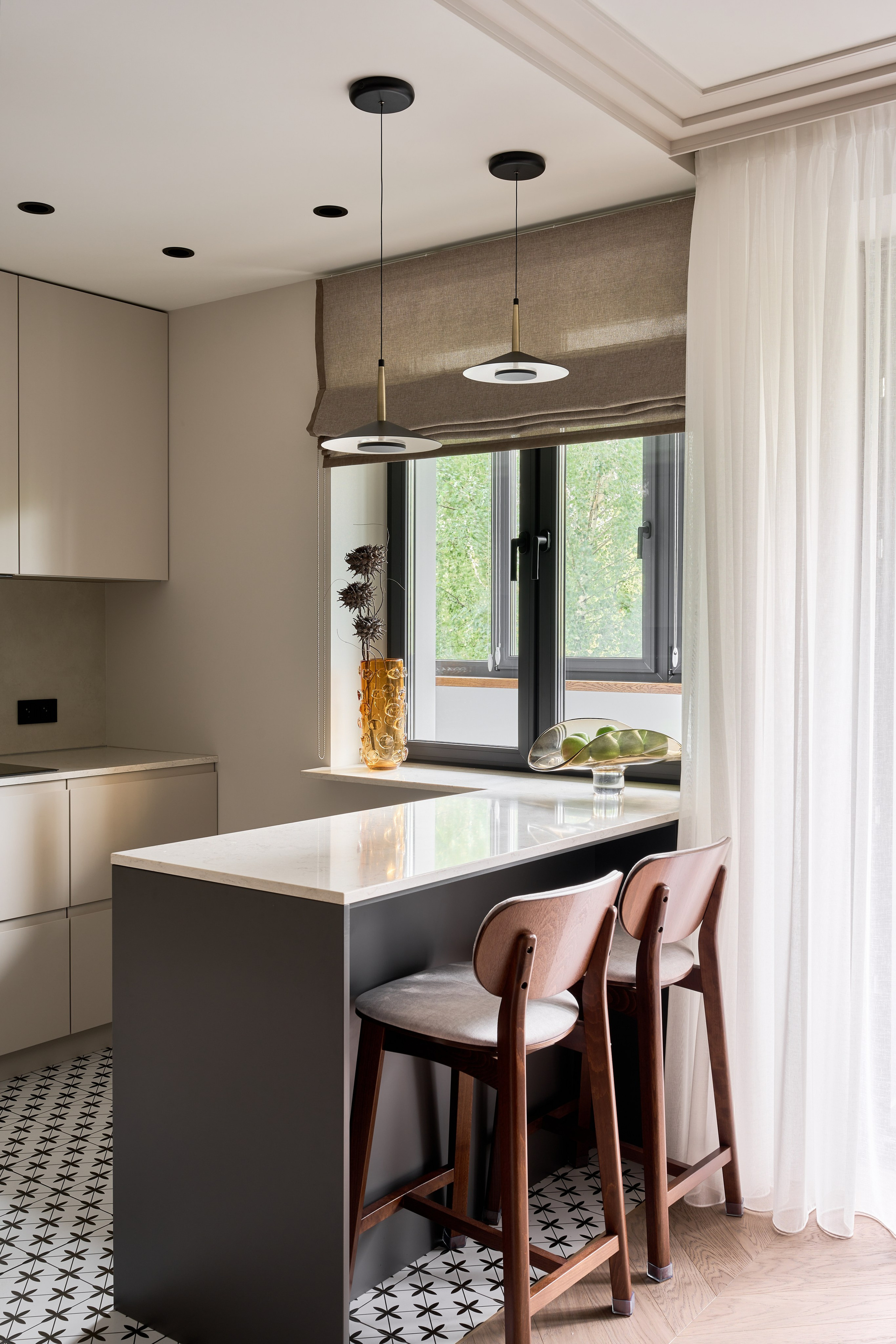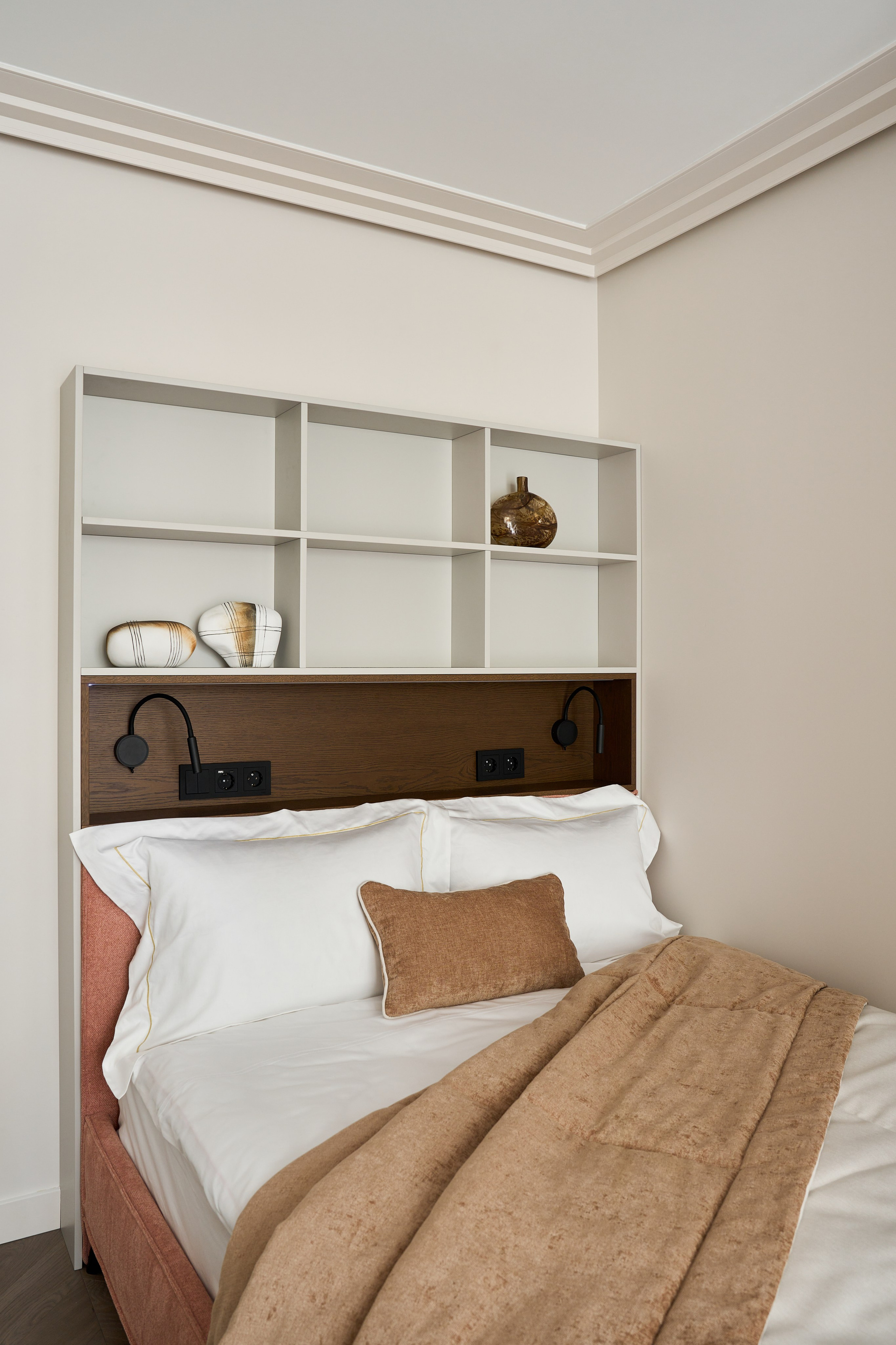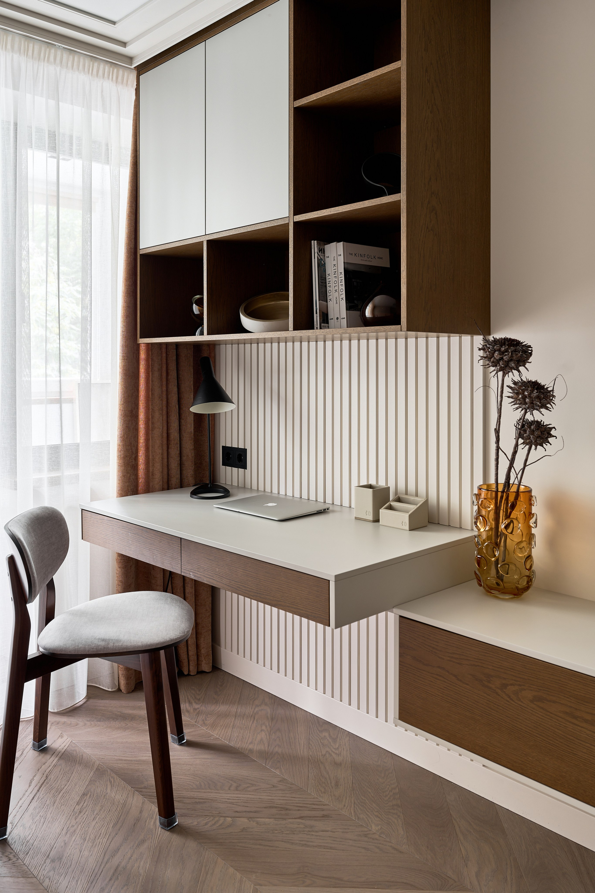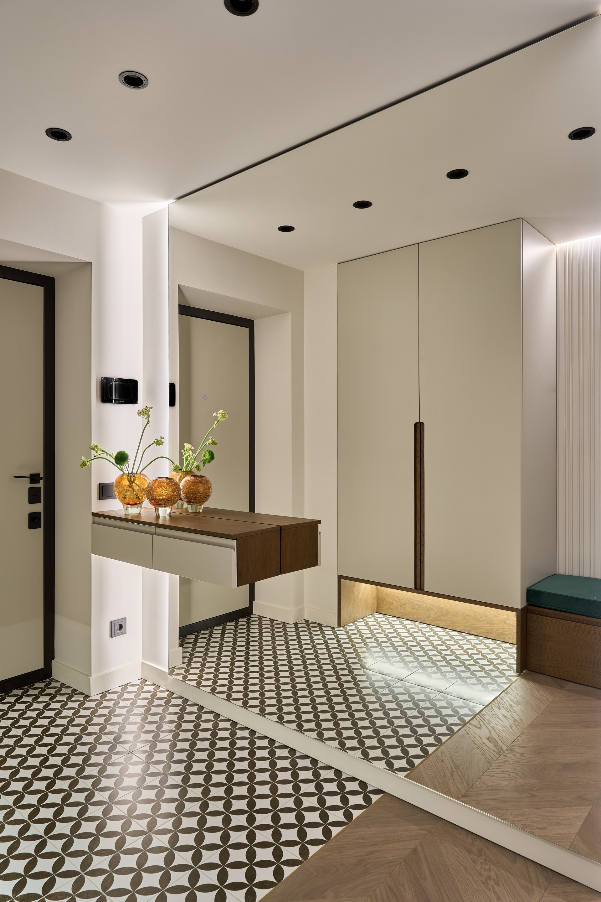 Профессиональная фотосъёмка интерьера квартиры в тёплых тонах выполнена для публикации в онлайн-журнале INMYROOM. Пространство оформлено в спокойной натуральной палитре с использованием текстиля, дерева и мягкого освещения, создающих уютную атмосферу современного жилого интерьера.