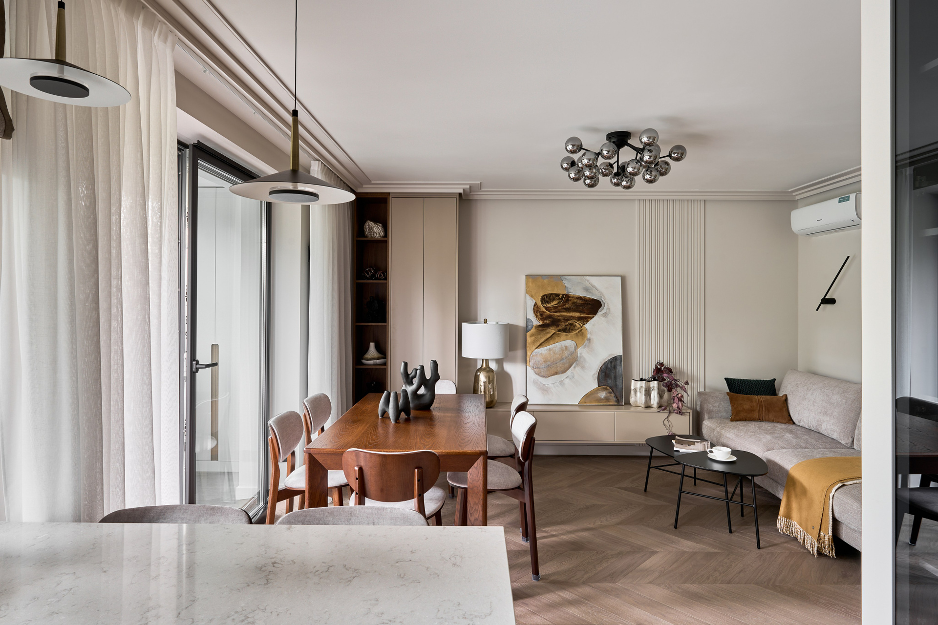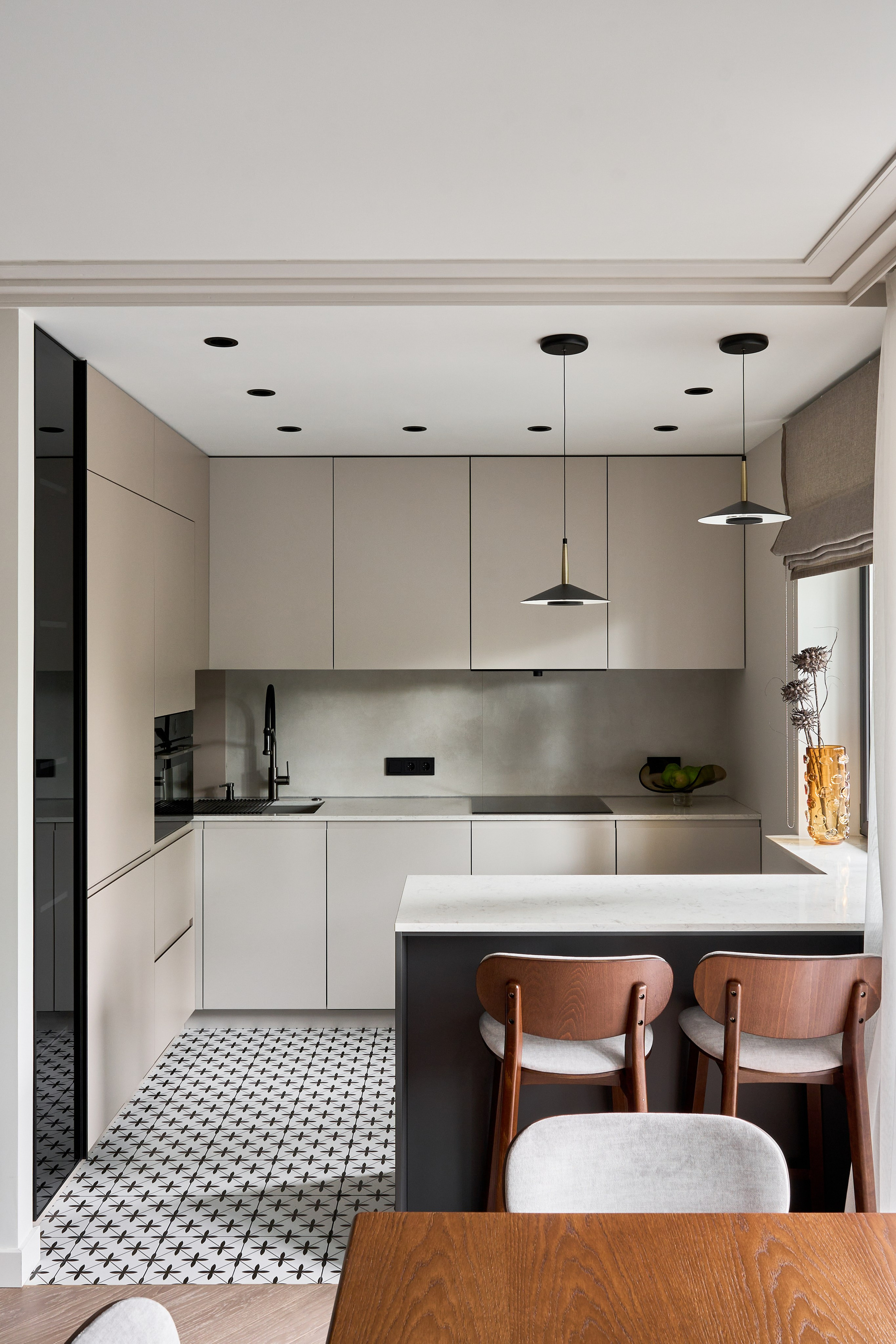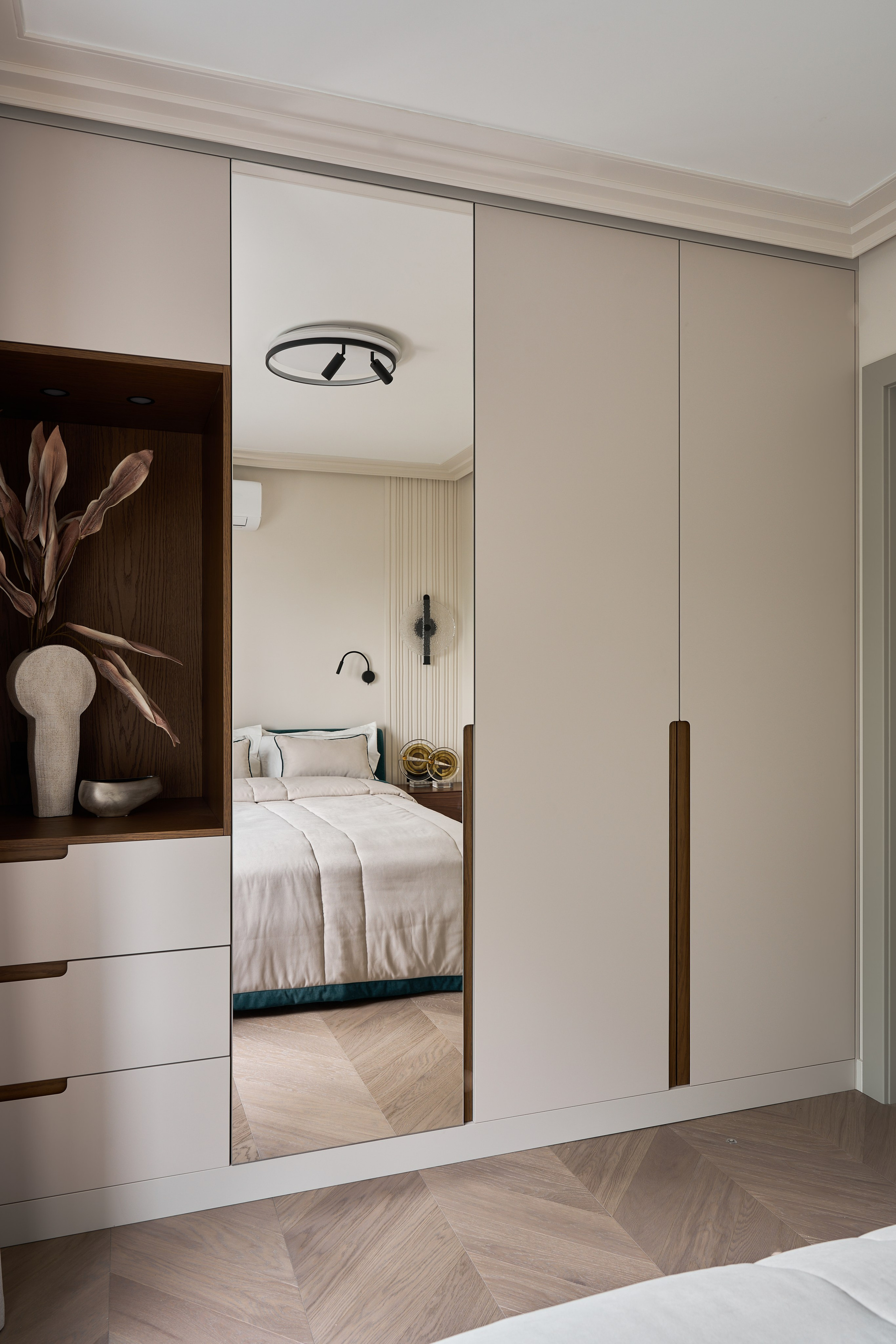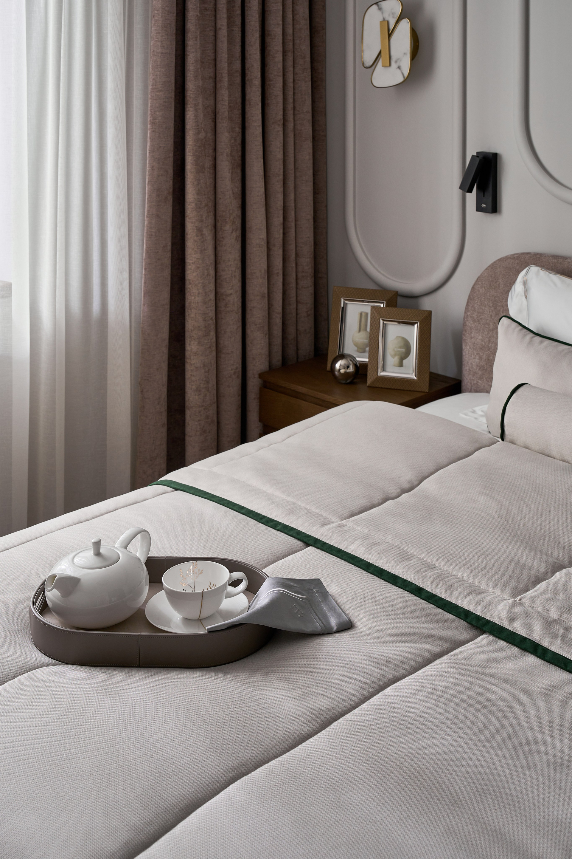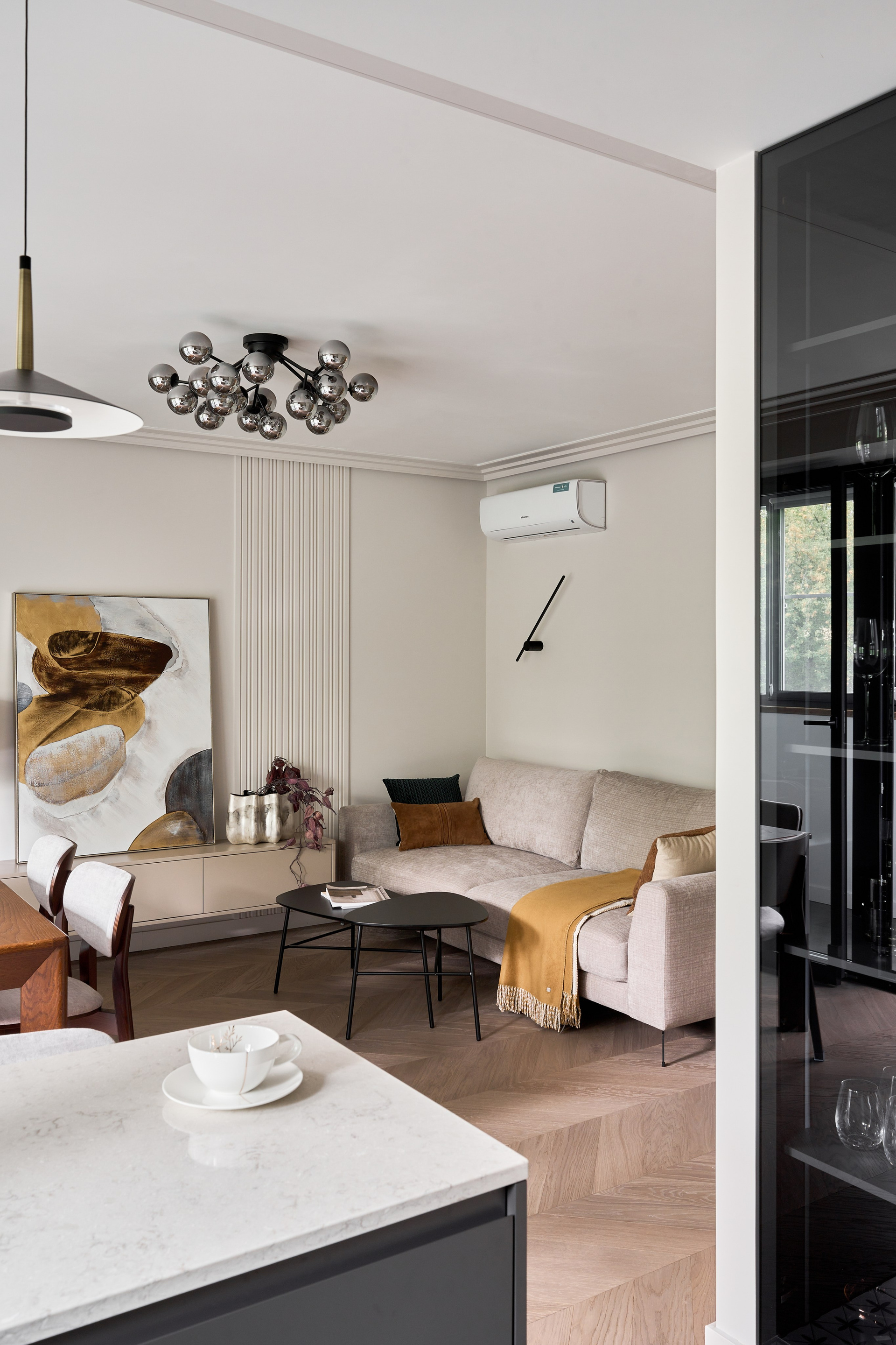 Профессиональная фотосъёмка интерьера квартиры в тёплых тонах выполнена для публикации в онлайн-журнале INMYROOM. Пространство оформлено в спокойной натуральной палитре с использованием текстиля, дерева и мягкого освещения, создающих уютную атмосферу современного жилого интерьера.